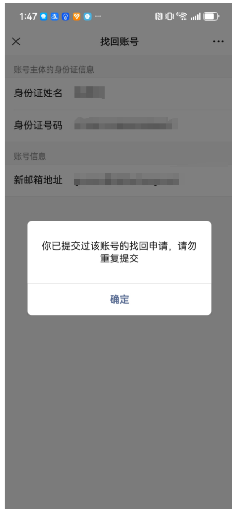 微信公众号密码遗忘,但是邮箱也不可以用了,现在我作为管理员如何找回公众号呢?姓名和身份证都是我的信息,而且绑定的我的微信号。找回密码需要邮箱验证,但是邮箱不能用,找回账户,发送申请后新邮箱收不到任何信息,再次提交申请显示已提交过,无法再次申请,这种情况如何处理?