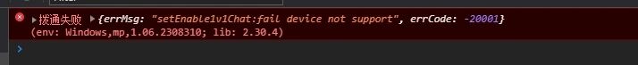 双人音视频对话“功能,你们文档里面写的支持windows的,但是我用微信PC端的小程序打开视频通话报错,报这个错:errMsg: "setEnable1v1Chat:fail device not support", errCode: -20001