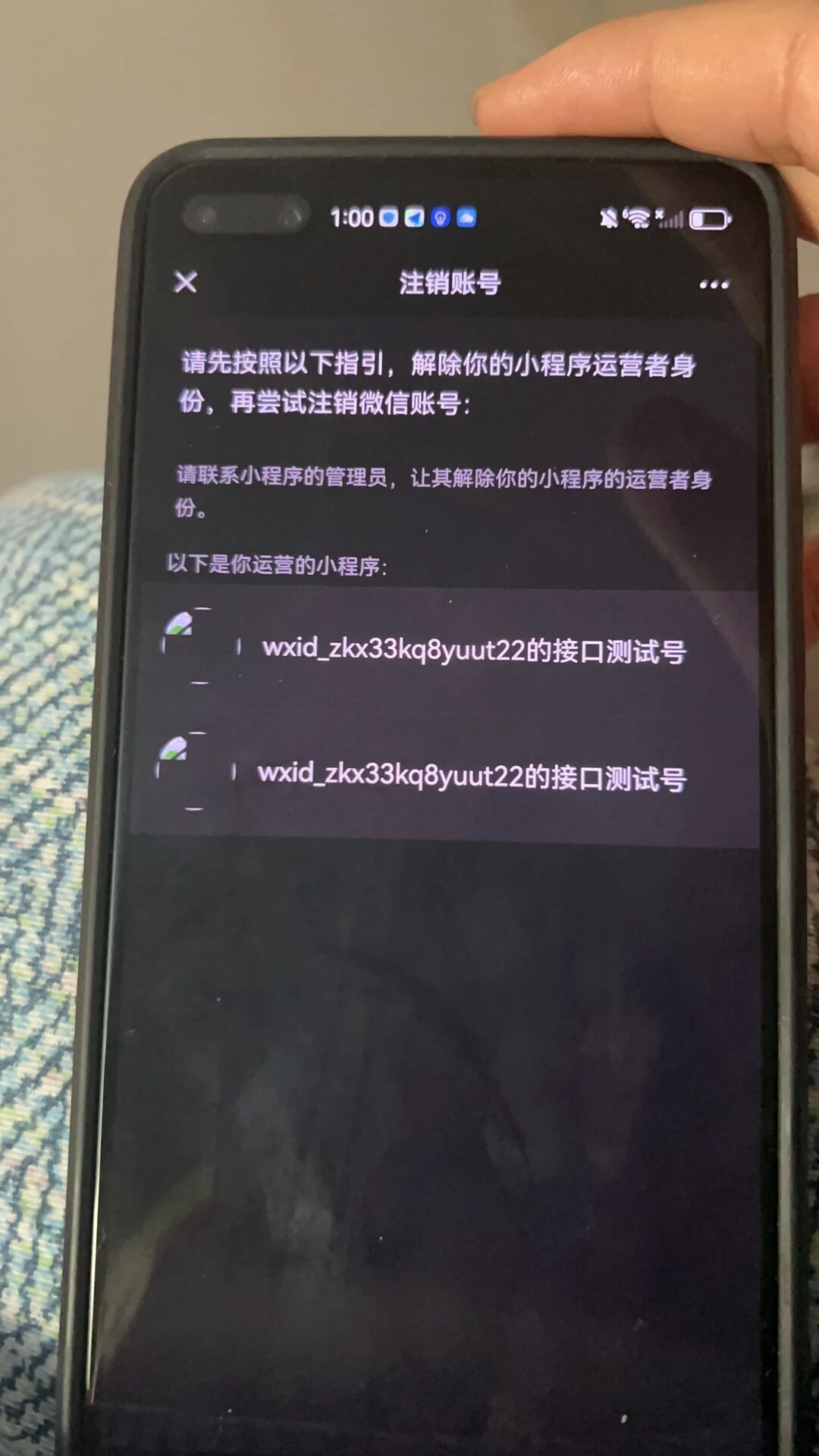 我想注销微信,但是显示我有运营的小程序,但是这些都是测试号,需要怎么操作我才能注销这微信呢?