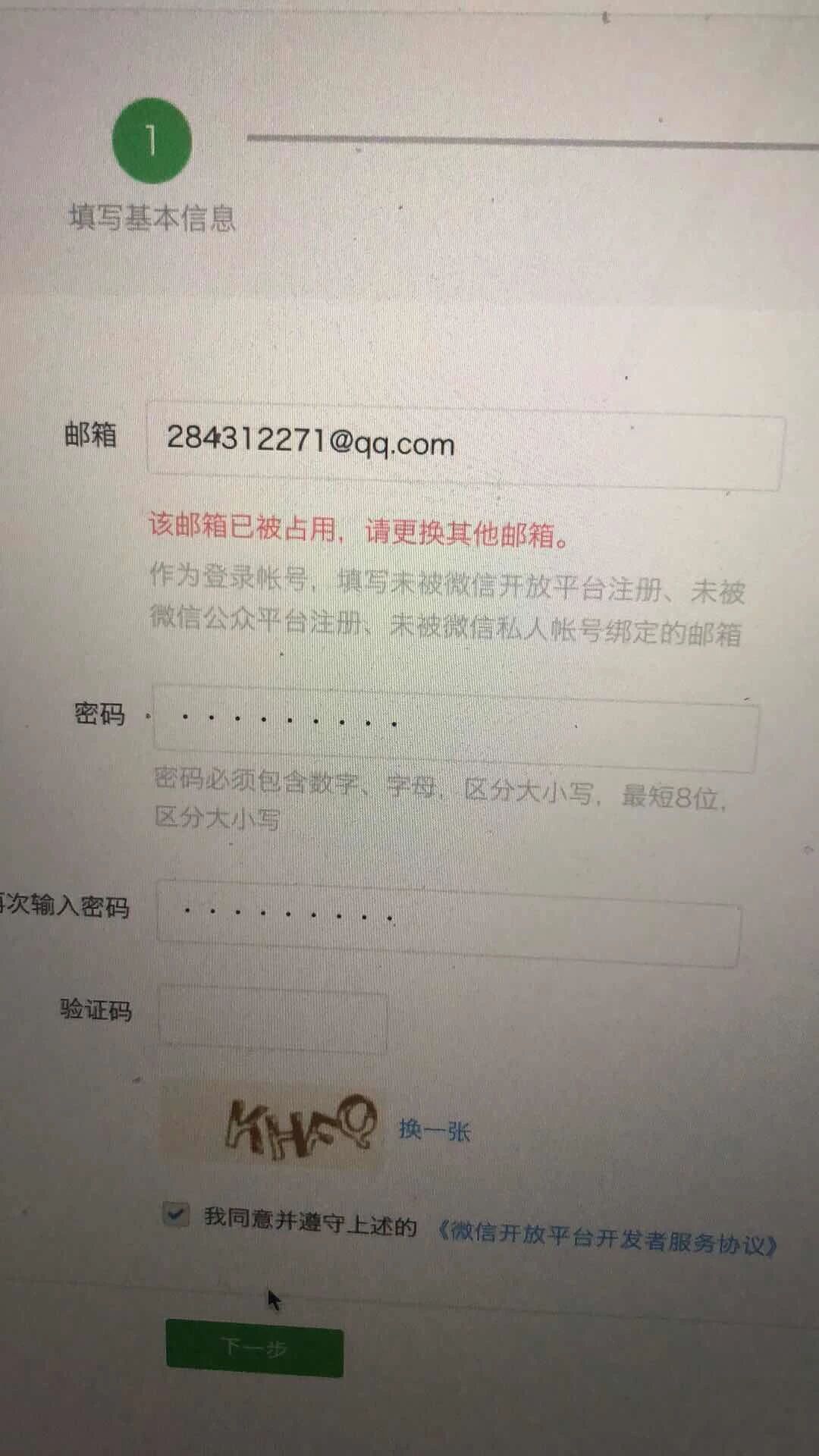 已经用该邮箱注册了微信开放平台。微信公众平台账号跟微信号是不一样的,注册了微信开放平台的邮箱是不能同时用来注册微信公众平台的!