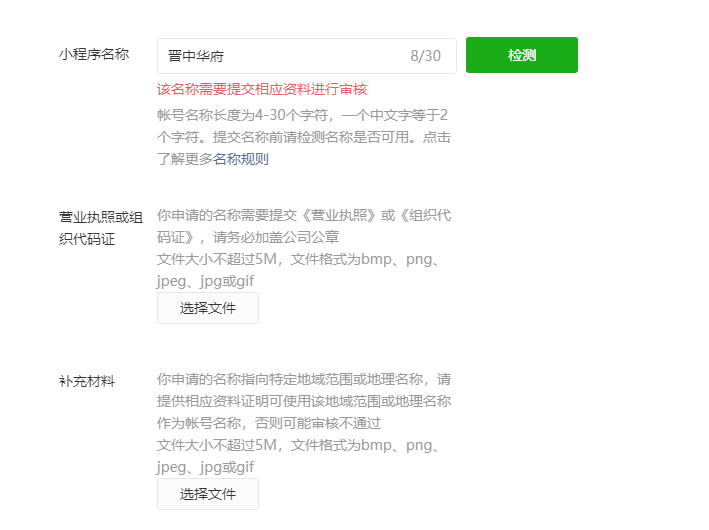 你好,为什么晋中华府小程序名字需要提供相应资料,而晋城华府、山西华府不需要,晋城和晋中同样都是地级市呀?