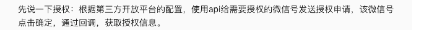 先说一下授权:根据第三方开放平台的配置,使用api给需要授权的微信号发送授权申请,该微信号点击确定,通过回调,获取授权信息。