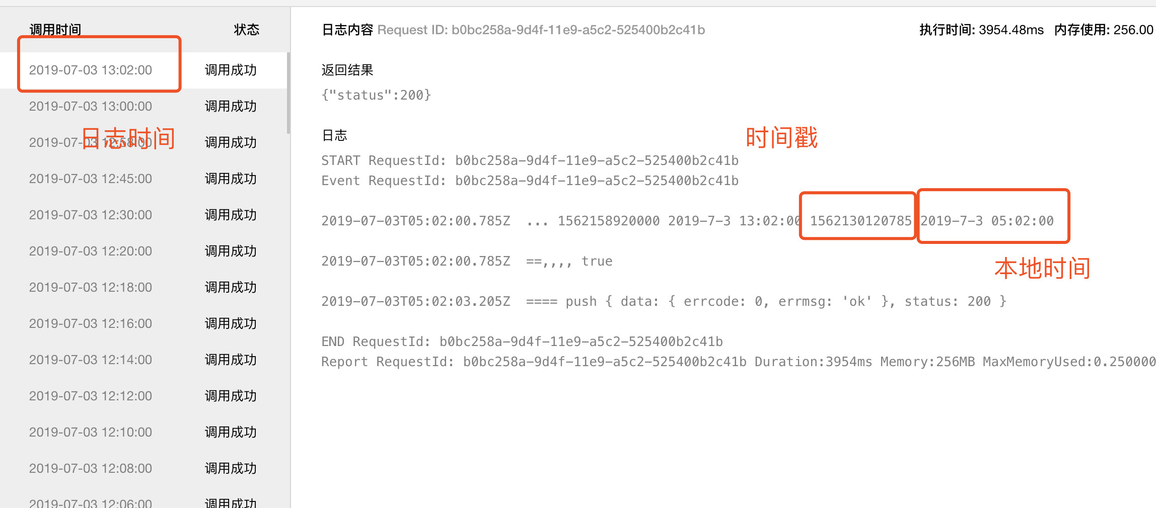 左侧为UTC+8的日志记录时间,