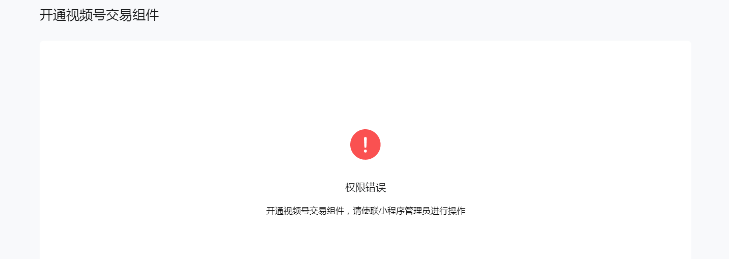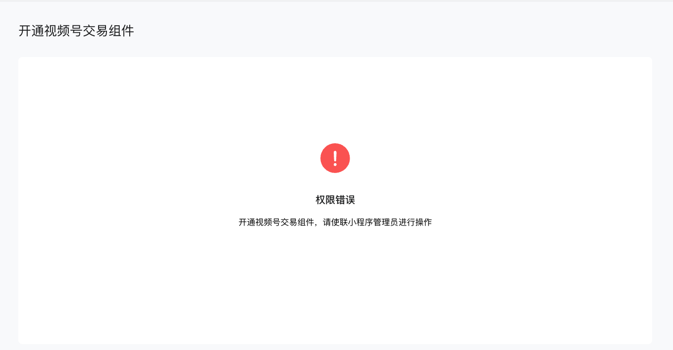 小程序视频交易组件申请商户号提示:权限错误 开通视频号交易组件,请使联小程序管理员进行操作