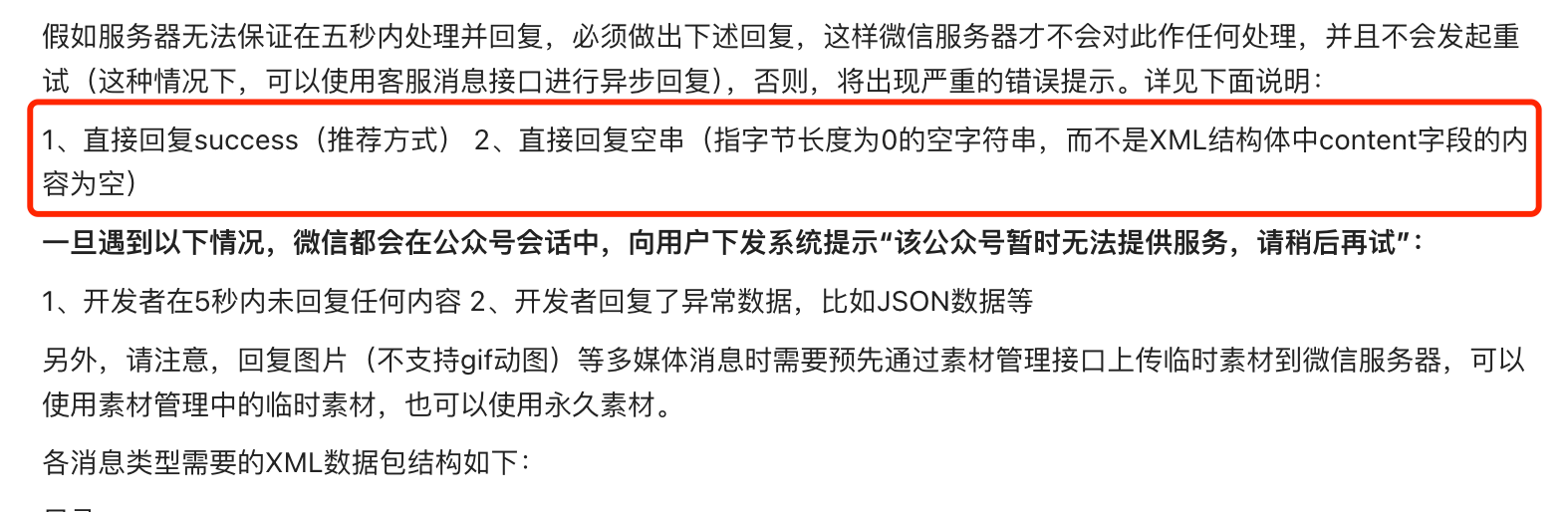 推送消息之后,服务器成功返回消息,过了5秒之后,收到“该公众号提供的服务出现故障,请稍后再试”