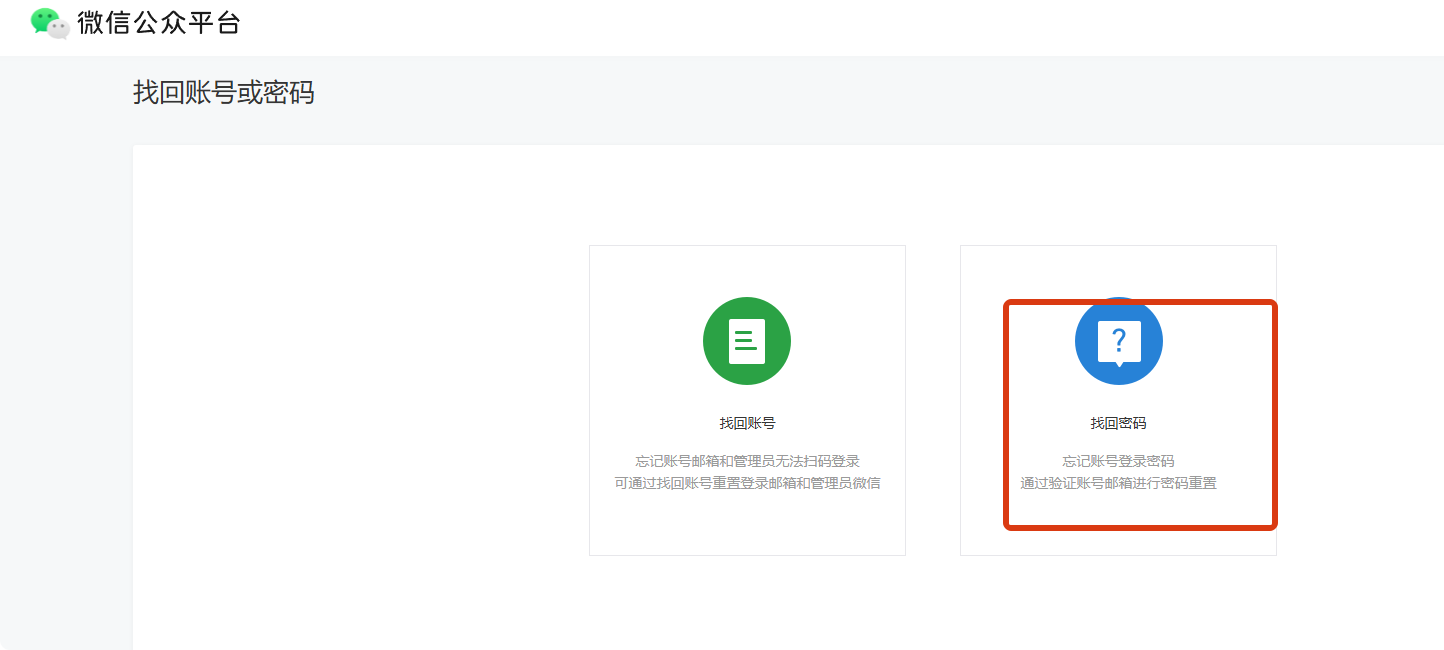 找回密码:https://mp.weixin.qq.com/cgi-bin/readtemplate?t=forgetpwd/index_tmpl&token=&lang=zh_CN