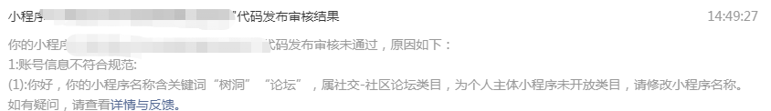 但刚刚给出的审核结果显示的是修改前原名称且未通过