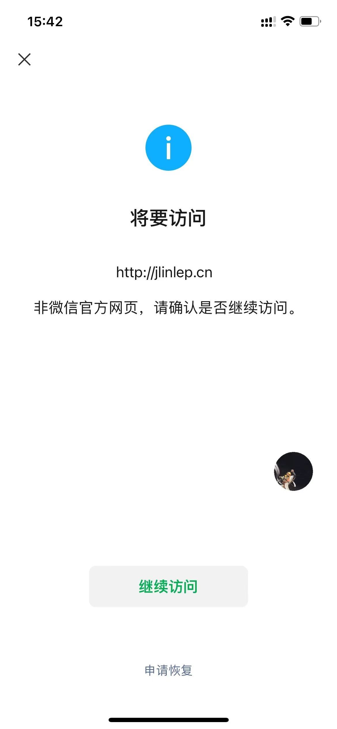 jlinlep.cn 在微信打开显示非官方页面 我看别人的了 没有这样显示的 我这个也没违规 麻烦恢复一下