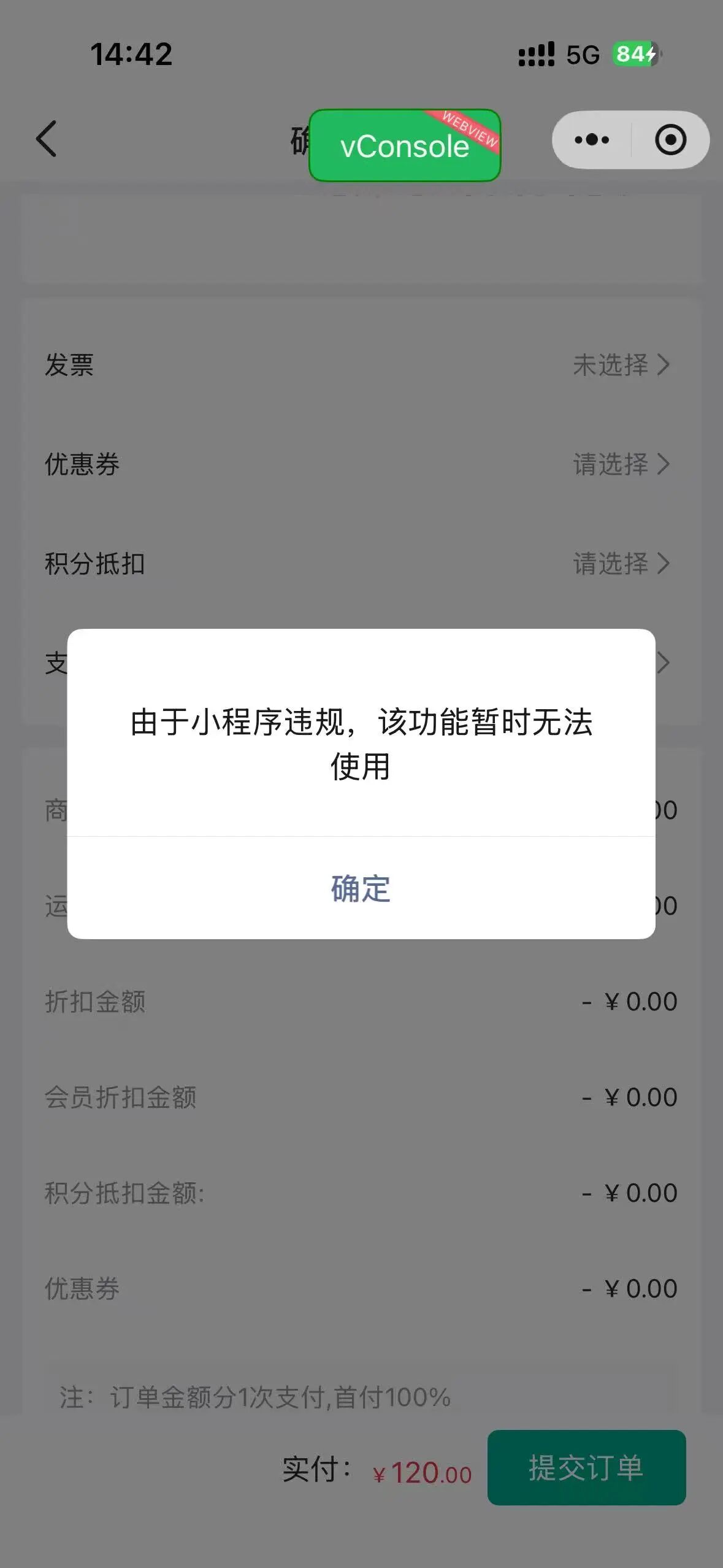 我们在开发聚营通支付时,需要通过半屏小程序打开聚营通收银台,但是在唤起半屏时,小程序提示违规。我们小程序没收到任何违规通知呀。