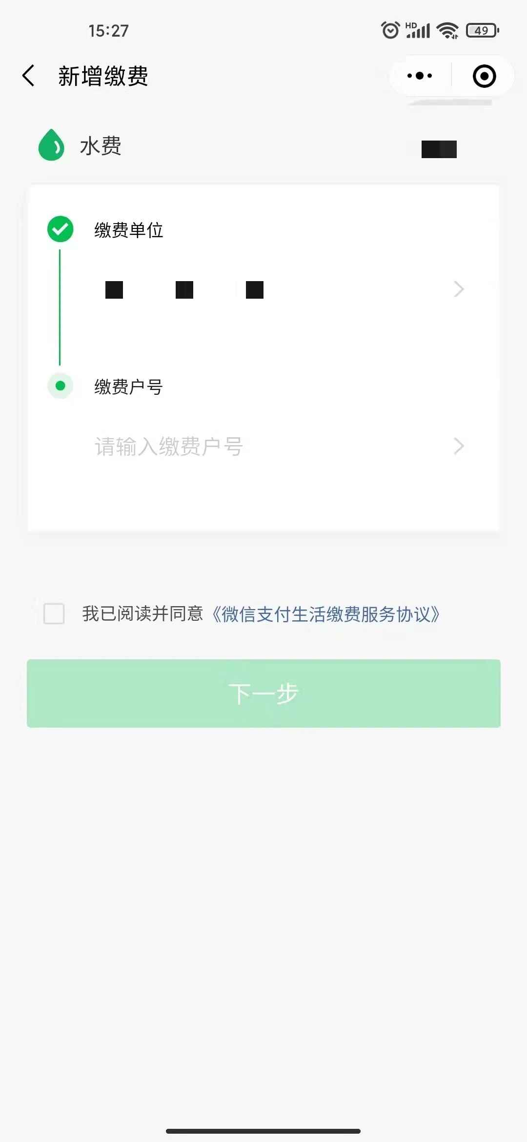 能从自己的一个小程序跳转到“生活缴费”中的水费页面,并且还需要显示缴费单位