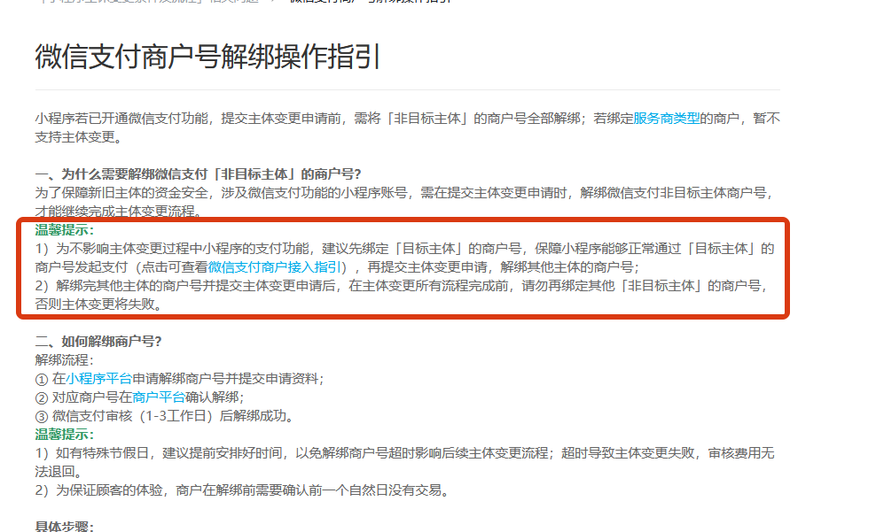 变更主体为C,就需要解绑商户号1和商户号2。