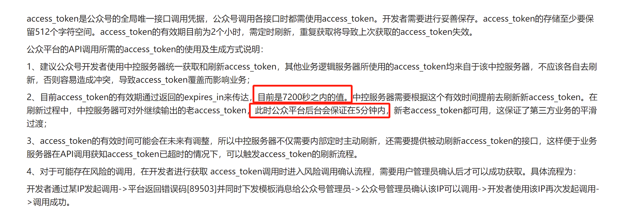 我们在小程序体验版和正式版同时使用时,由于两个版本服务器隔离会导致无法共同管理access_token,这里有说明在新的access_token输出后,老的access_token在5分钟内会有效并可以继续使用,我们可以设计成access_token缓存为4分钟么,4分钟过了就重新获取,这样两个环境就都可以用,但是每4分钟一次,那么一天可能就会调用1小时/4=15*24=360次,会不会触发频次限制,这里清给一个比较正式的文档说明获access_token接口上线的地址(没找到),如果支持,那么我们就这样设计