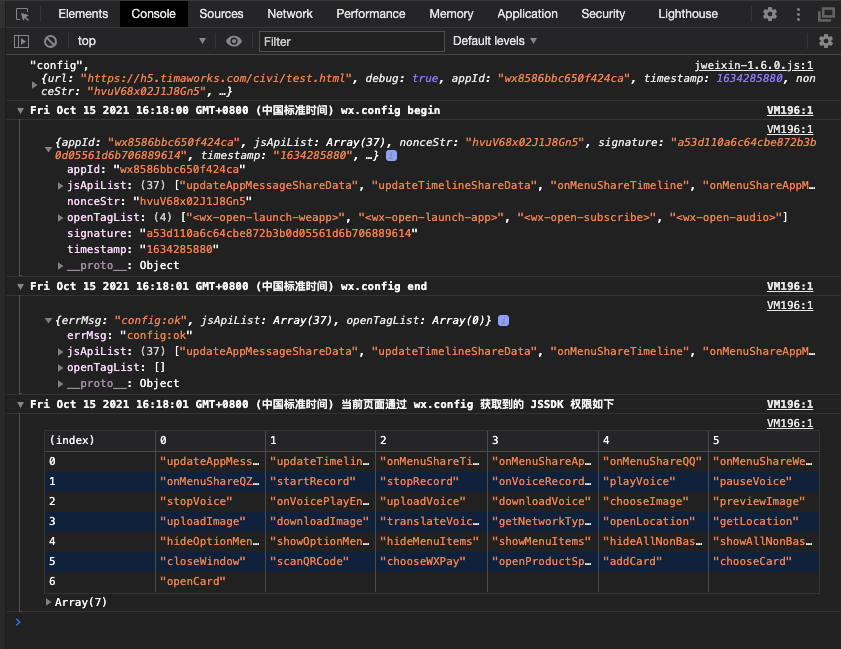 上面的截图是,测试页面在最新版微信开发者工具中,控制台的输出