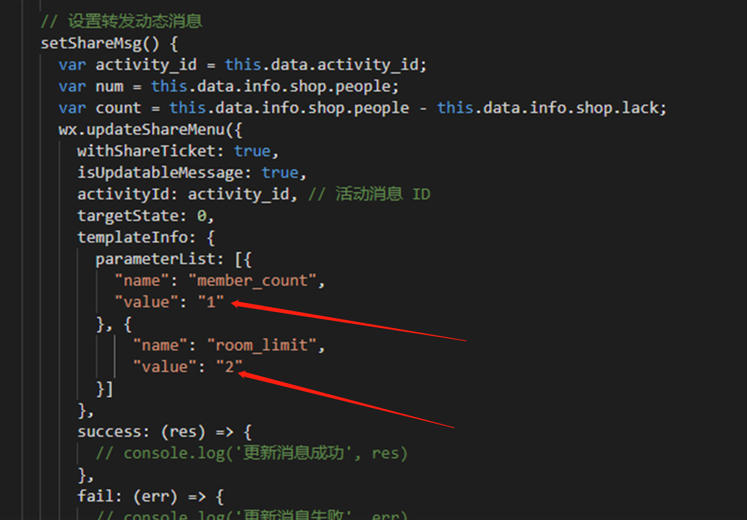 小程序动态消息,这样写没有用,值是有的,但是读取不到