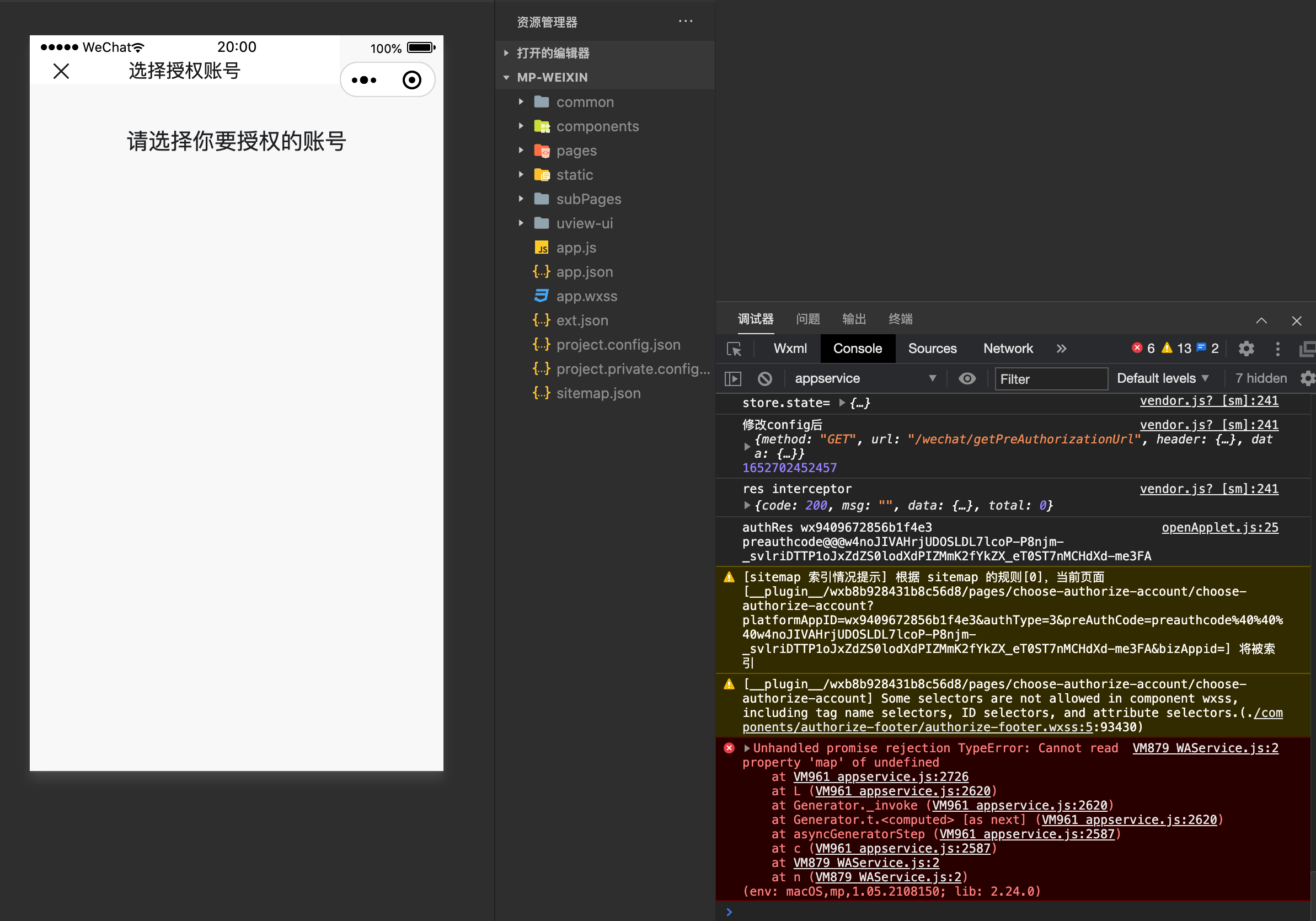 授权的步骤报错
