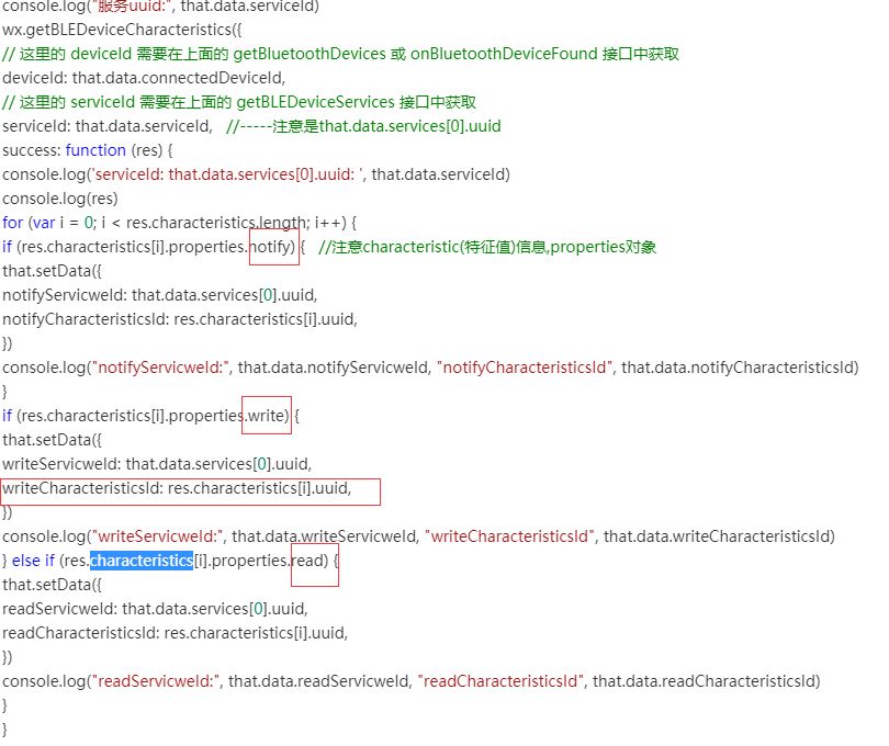 if (res.characteristics[i].properties.notify) { //注意characteristic(特征值)信息,properties对象