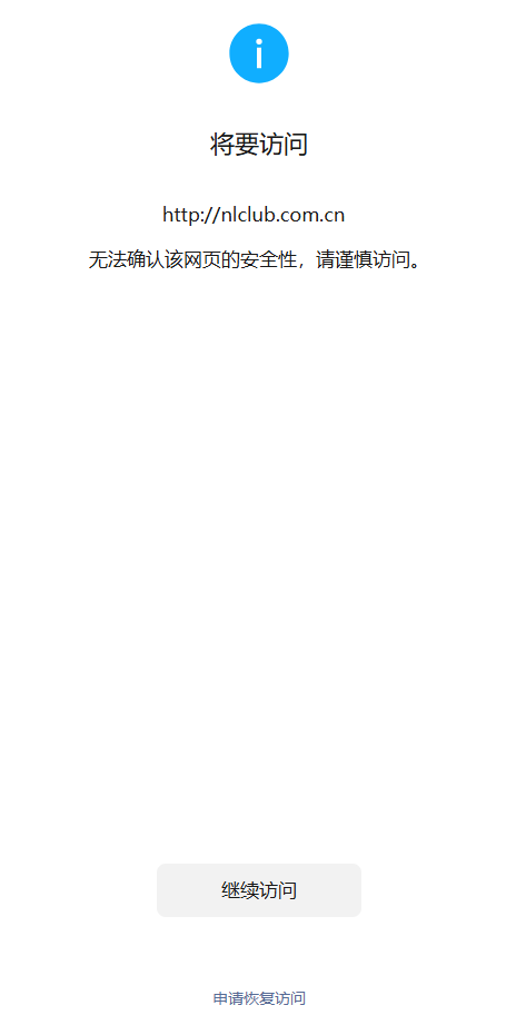 1、微信内访问网站出现“无法确认该网页的安全性,请谨慎访问”的拦截提示
