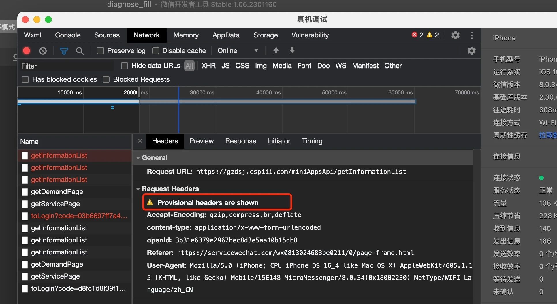建议检查真机上网络问题,以及能否直接正常访问异常接口