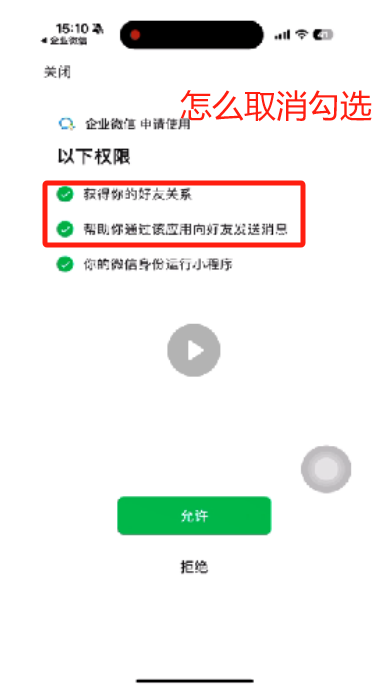 企业微信自建应用绑定的小程序,在用户第一次使用的时候弹出微信授权框,能否再次唤醒授权界面、或者取消授权框里面的选项,只保留“以微信的身份运行小程序”选项?