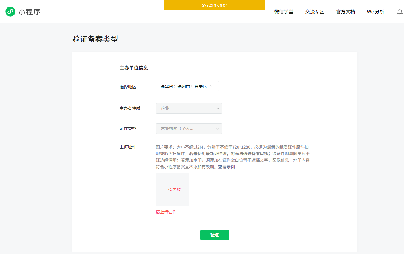 小程序修改备案上传图片报错
