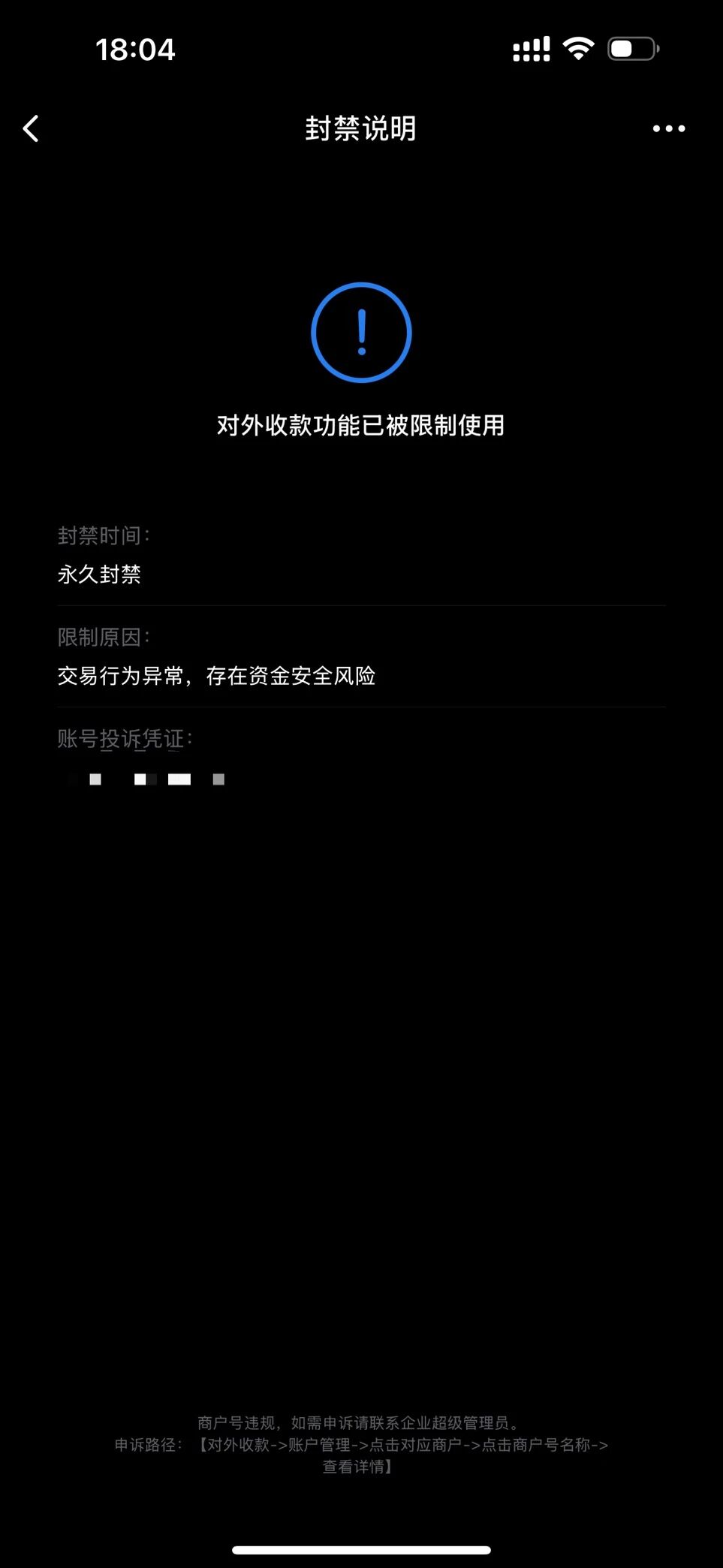 很莫名其妙的企业微信对外收款突然给我封了 有提示但是还没来得及找办法处理就给我限制了 打95017是机器人 然后转微信客服又是机器人 也没找到人工客服入口 然后商户助手又显示一切正常 请问怎么解决?