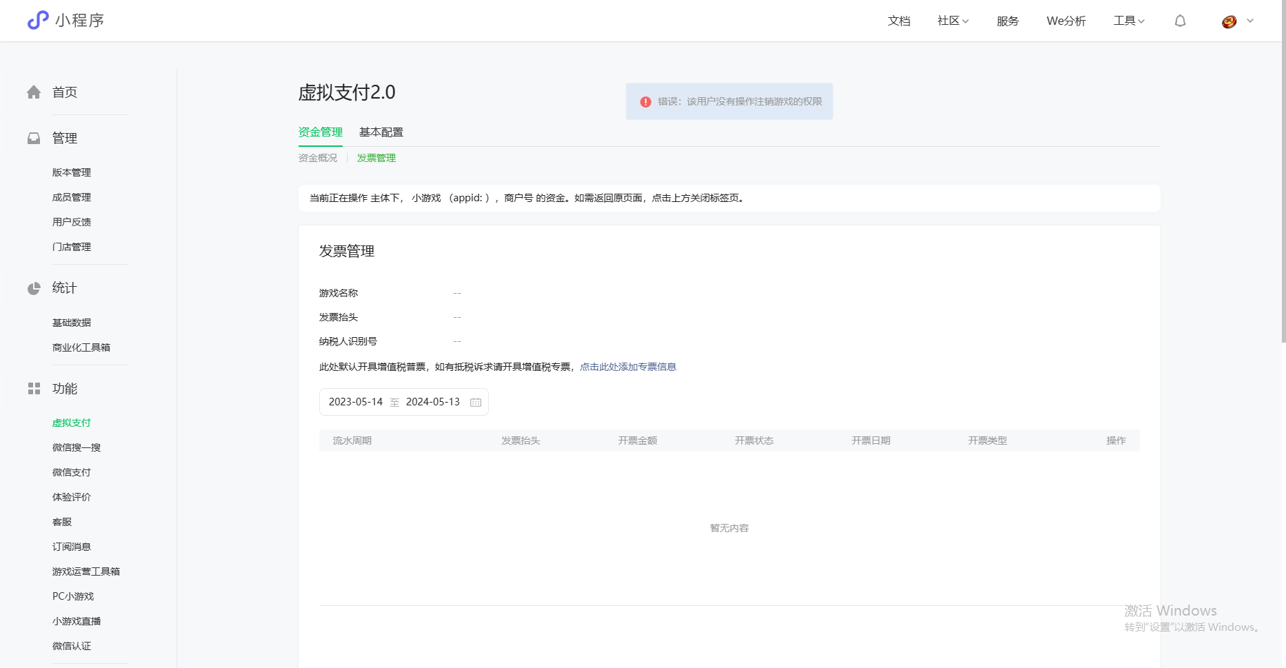 该游戏已经注销了,也提交了提现和开票的相关表格,通过之后拼接好了对应链接,但是提示无操作权限,操作的游戏管理员也是表格提交的微信号,麻烦帮忙解答一下,这个要怎么弄,目前无法将注销的游戏开票和提现,里面还有钱的