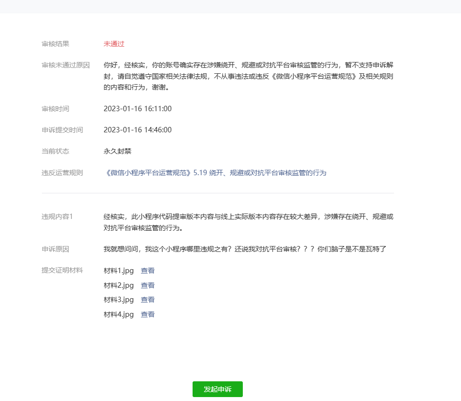 你好,平台对于违规小程序的处理是根据实际具体情况进行评估。如果对平台处理存在异议可发起线上申诉,会有专人处理。