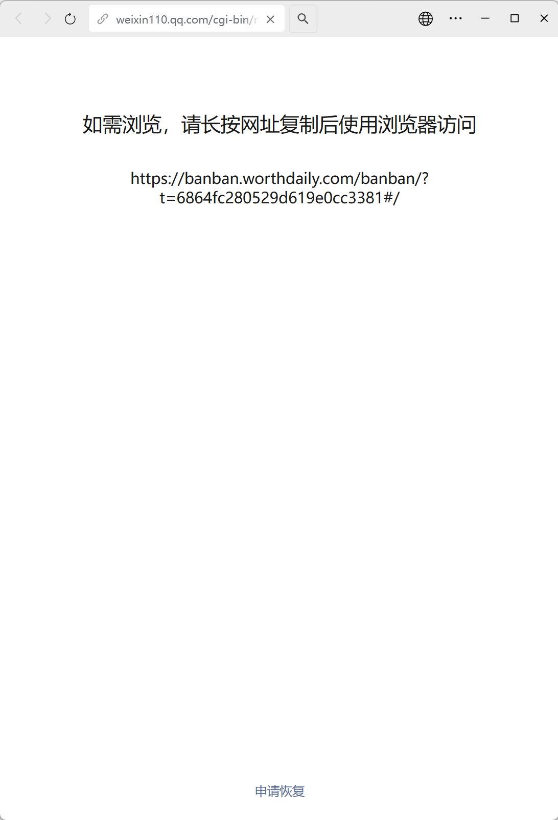 使用了4年的公众号H5网页,突然提示 “如需浏览,请长按网址复制后使用浏览器访问” 是为什么?进行了申请回复,也没有任何回复!