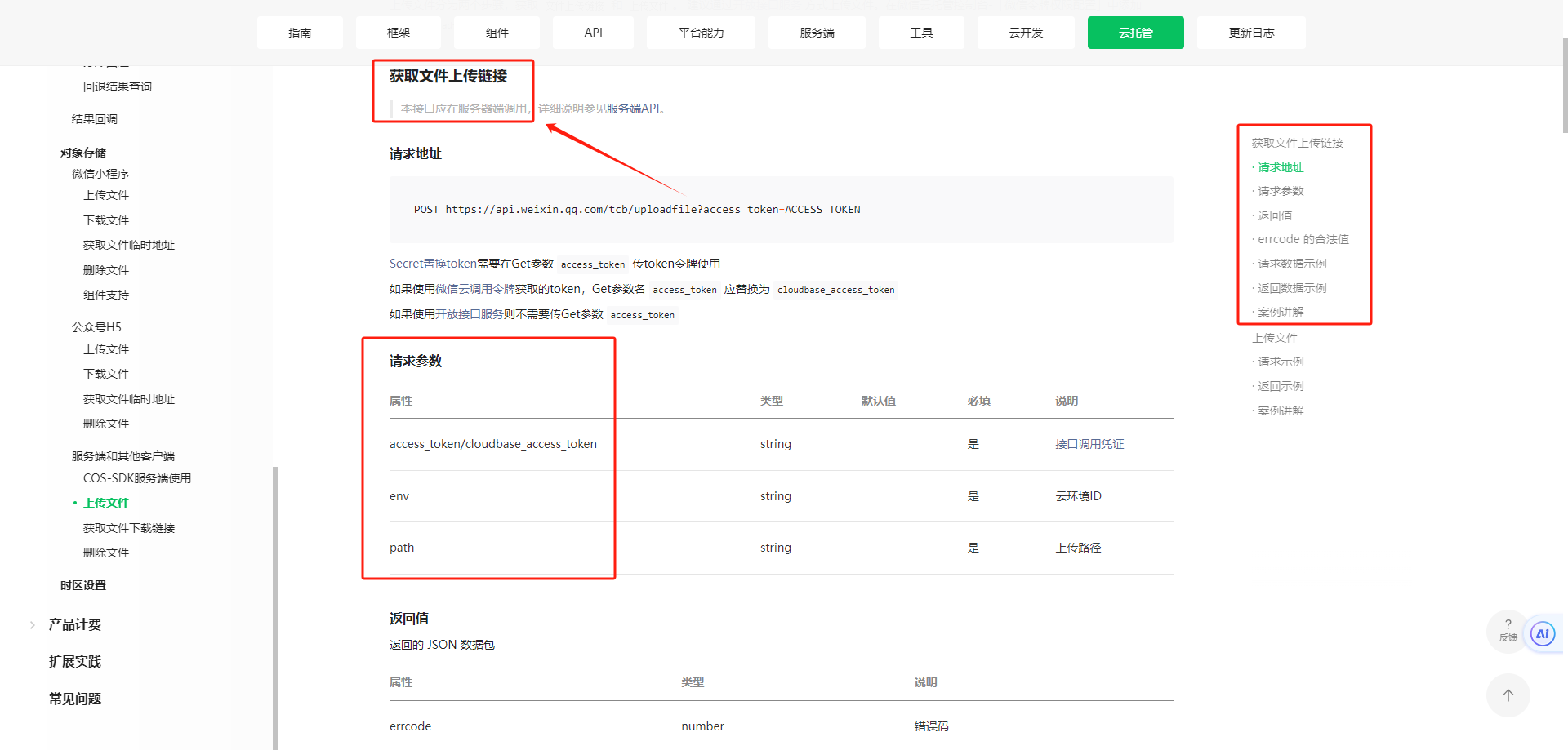 “获取文件上传链接”接口文档:https://developers.weixin.qq.com/miniprogram/dev/wxcloudrun/src/development/storage/service/upload.html(获取文件上传链接部分)