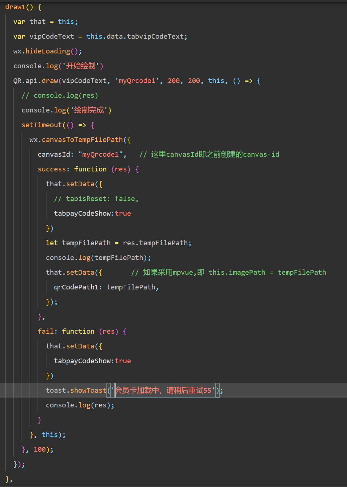 在网上找到一些方法,把draw的回调加上延时,但加上延时之后canvasToTempFilePath会报错fail canvas is empty。