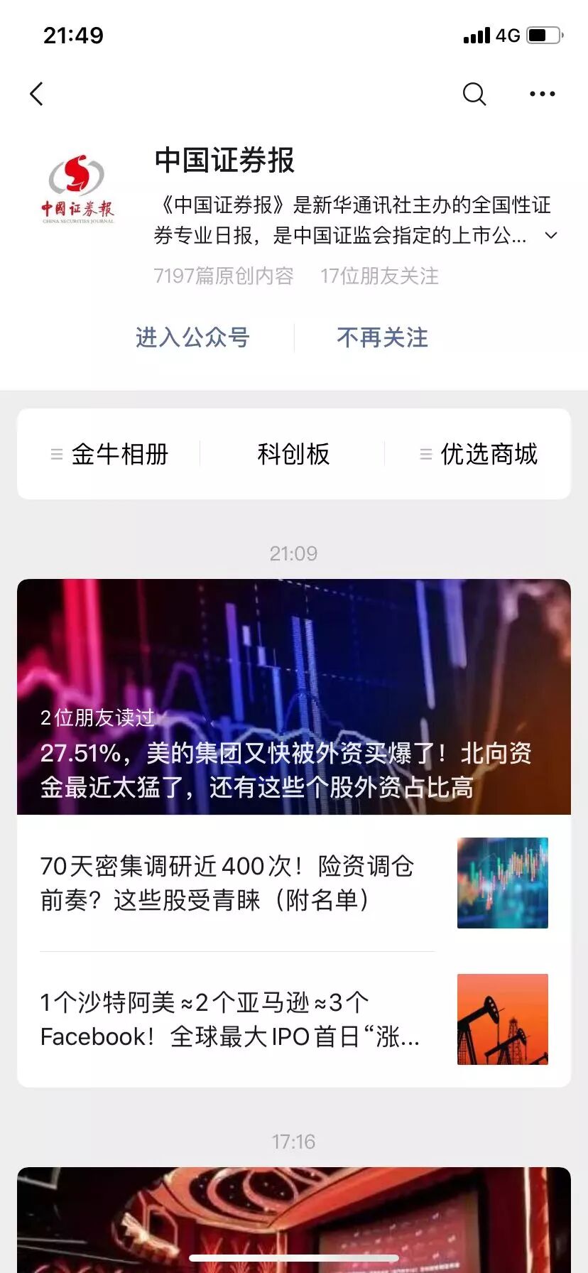 进入公众号主页,显示收到推文又是另外一个时间,但一般比上图要早,而且貌似每个人手机上这个时间是一致的;