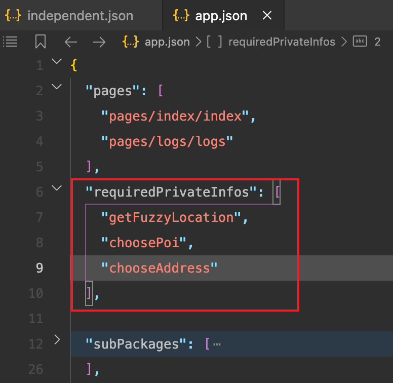 "requiredPrivateInfos": [ "getLocation" ] app.json文件中这样配置即可这个配置了吗?