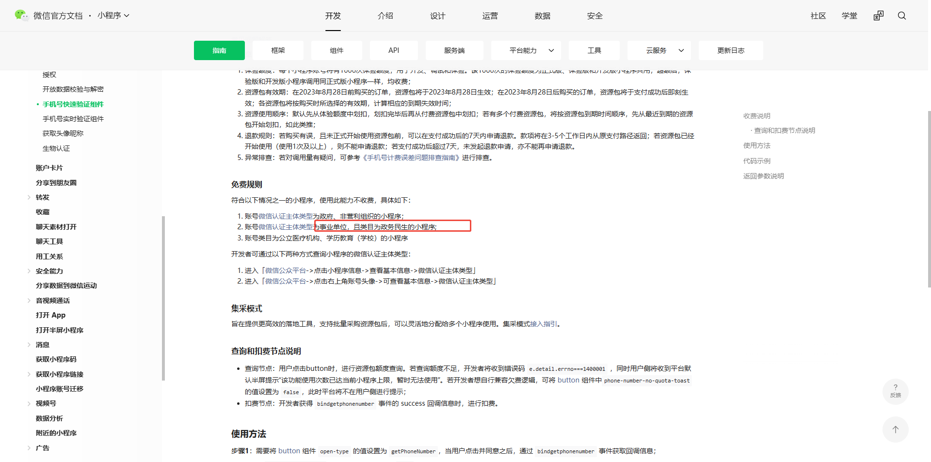 你好,请查看文档说明,认证主体类型为事业单位且类目为政务民生的小程序才在免费范围里。