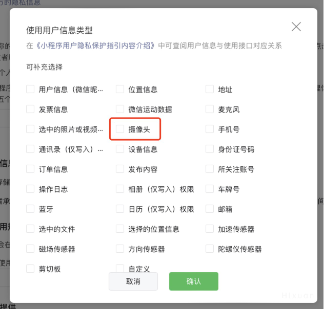 用户隐私没勾选相机的原因?