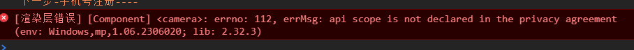 [渲染层错误] [Component] <camera>: errno: 112, errMsg: api scope is not decl