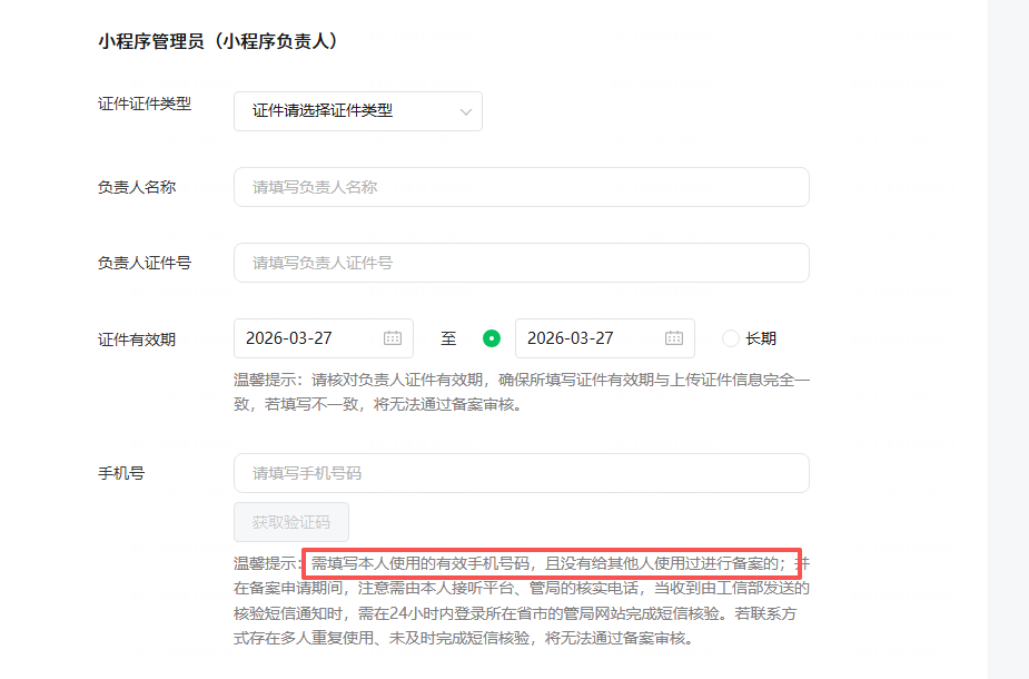 不同主体下同一个人是否允许给不同小程序备案