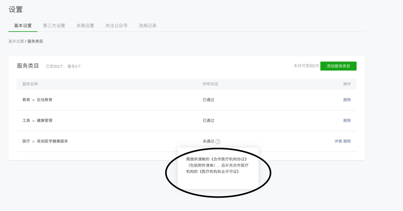 1)涉”医疗-其他医学健康服务“类目服务仅为”非医疗级基因检测”内容(如:运动检测等),暂不支持涉“医疗级基因检测”(如:肿瘤疾病检测等)内容;