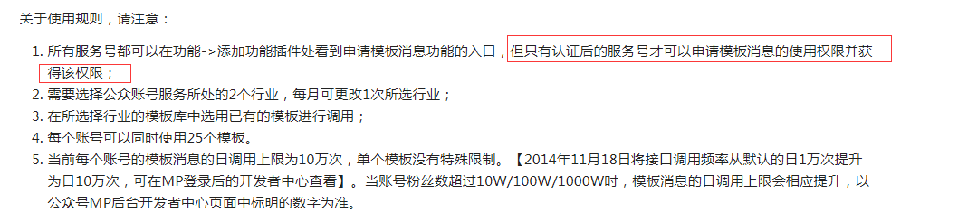 你好,只有认证后的服务号才可申请模板消息,请确认服务号是否已完成认证。