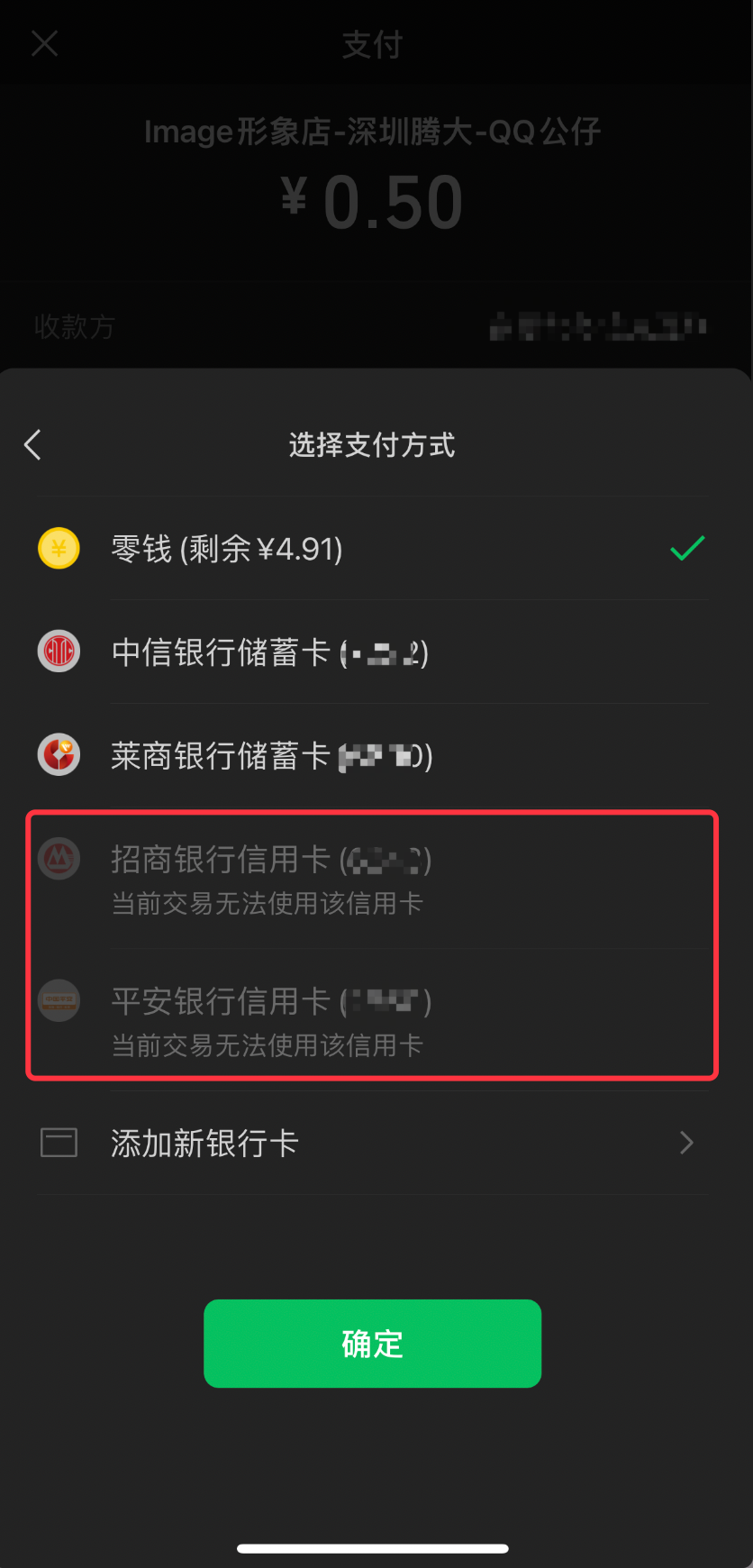 微信支付limit_pay参数传入no_credit参数限制信用卡支付是在弹出支付的时候,信用卡是灰色,还是选择信用卡并输入密码后给限制提示。