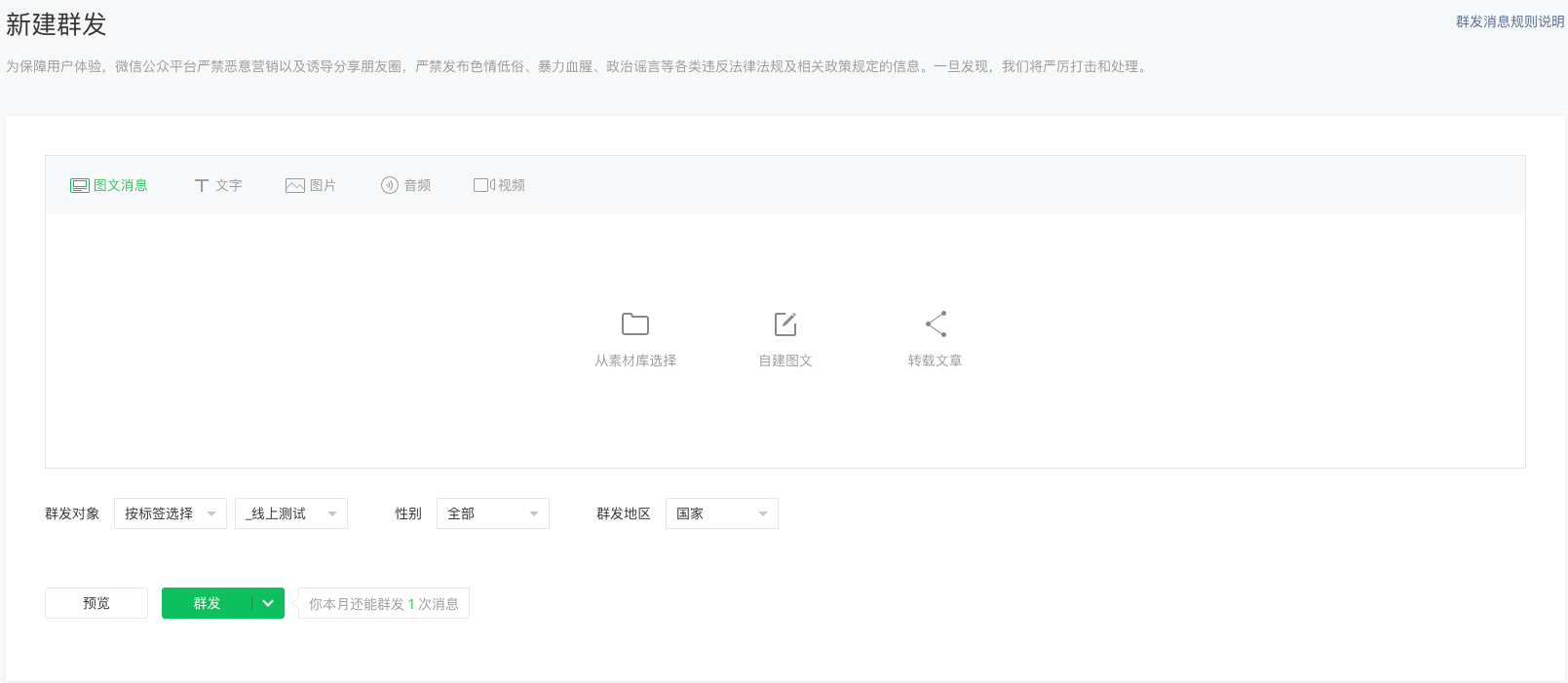 -- 服务号 针对某一特定标签 (_线上测试) 新建群发消息