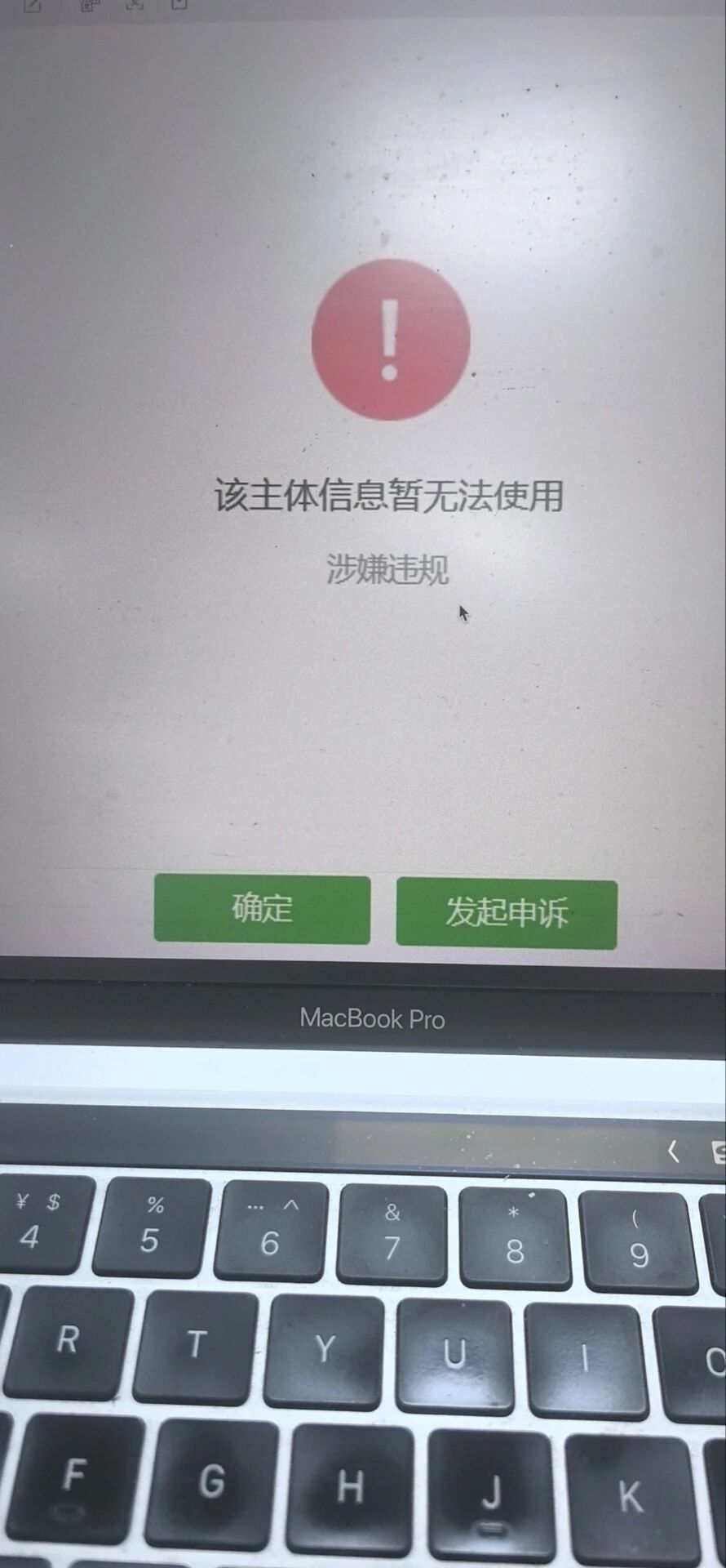 公司第一次注册小程序账号,直接提示该主体信息暂无法使用涉嫌违规?具体什么原因违规的也未说明,提交申诉了一直没有回复。烦请协助看下 id:gh_64b4309572f9