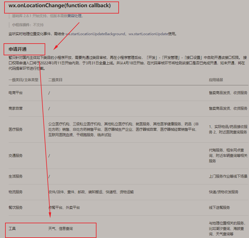 不通过原因:你所描述的小程序接口使用场景,目前未符合接入wx.onLocationChange(监听实时地理位置变化事件)接口的开放范围
