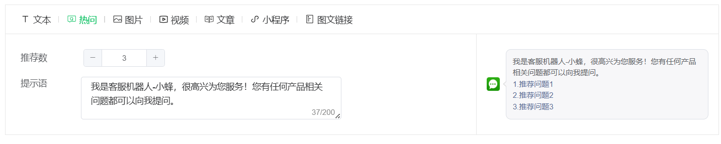 我配置了知识问答,欢迎语这里配置‘热问’,但调试时不显示推荐问题,这个应该如何配置?