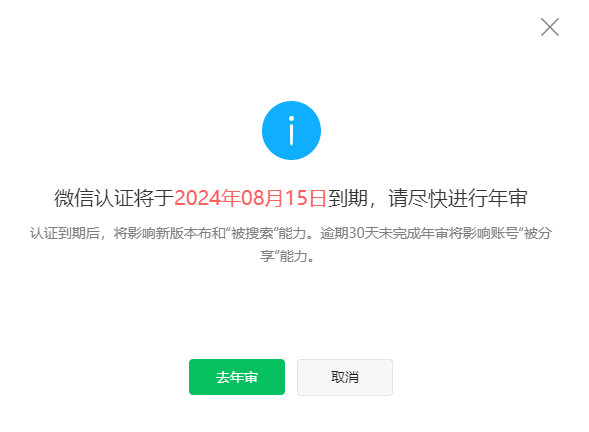 目前我司手上的小程序都收到如上年审通知,以前小程序是不需要进行年审的,现在是每年小程序都需要300块钱进行微信认证年审了么?哪里有发布官方的通知么?不然不好向领导汇报。