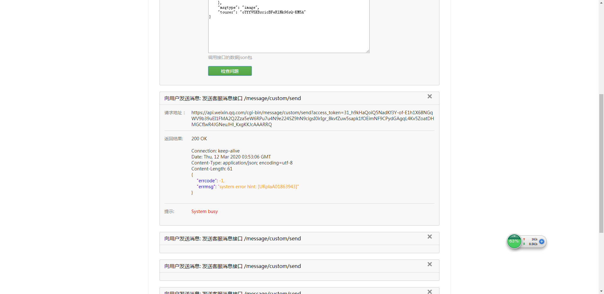 返回:{"errcode":-1,"errmsg":"system error hint: [uu0OTA07764924]"}