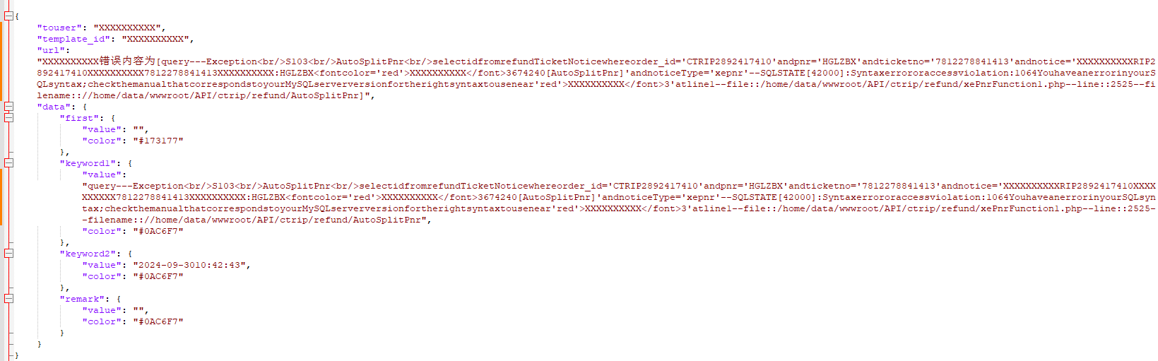 使用公众号向用户推送信息,其他信息均可正常推送接收,只有包含sql语句的信息无法被正常推送出来,想知道是我处理的格式不正确还是公众号不支持推送包含sql的信息