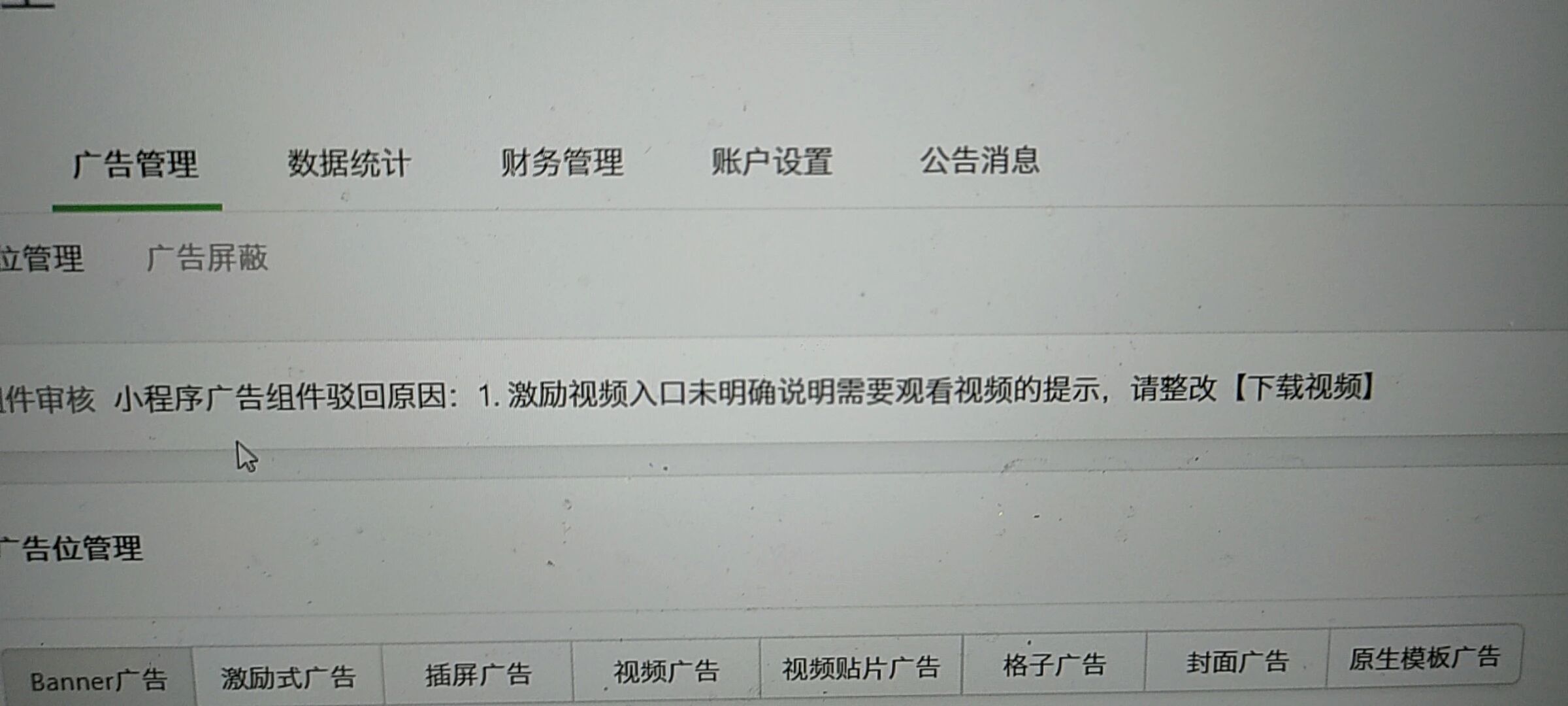 之前我我不懂,别人帮我搭建的,再贴吧攒了一个月。 3000多用户,我就开了流量主,我也不懂设置 就随便取了个名字,复制了广告ID。被驳回了我也不知道啥意思,但是今天别人跟我说,被驳回就是我 这个流量主废了。真的好冤枉啊,