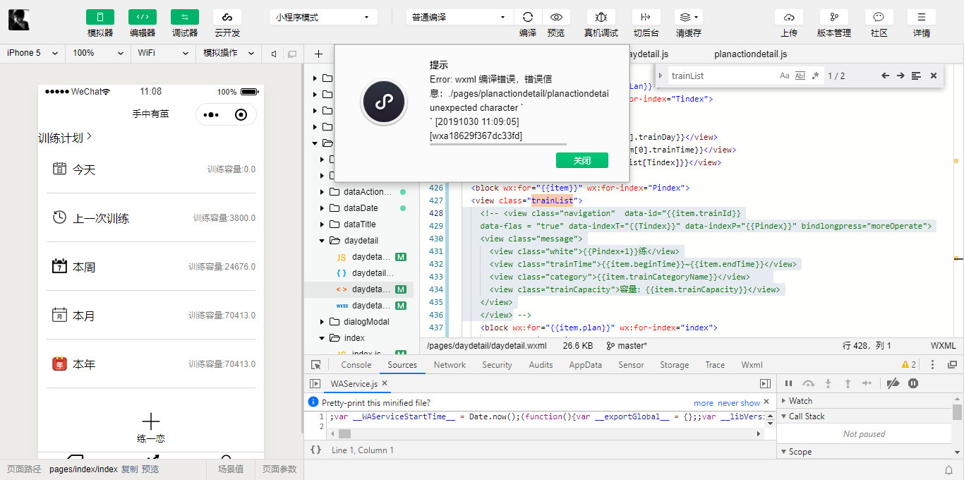 图二我把图一显示的208附近代码注释了,然后又报错另外一个页面的错,也没显示哪里的错,这个页面昨天用的好好的,今天就报错?而且模拟器上没有编译错误,真机调试和预览就会说编译错误