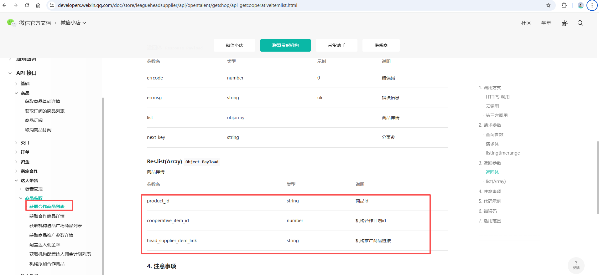 https://developers.weixin.qq.com/doc/store/leagueheadsupplier/api/opentalent/getshop/api_getcooperativeitemlist.htmlhead_supplier_item_link