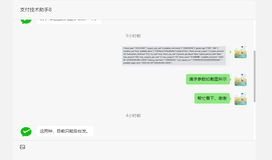 微信回复说不支持api创建折扣券和换购券。